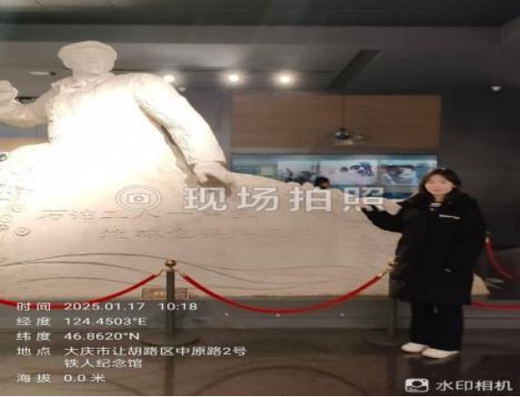 2025年1月17日上午,SHSJ-277组计科222刘书琪为传承与弘扬艰苦奋斗精神前往大庆市让胡路区铁人纪念馆进行参观,开展了一场意义非凡的参观学习活动。