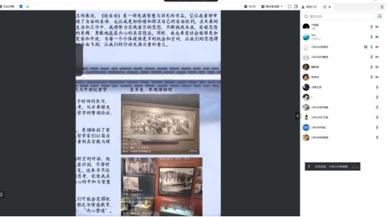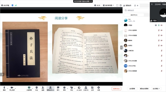 听完李老师的分享后,同学们纷纷表示对这些书籍产生了浓厚的兴趣。接着,闫春望、南宇良、卢星澎、邓旭、孙卓晶、李硕然等同学轮流进行了读书分享。有的同学则从哲学的角度探讨了《论自由》中关于个人自由与社会责任之间的平衡,认为这本书让他对自由有了更深刻的理解。有的同学则分享了《孙子兵法》中的精彩章节,他认为《孙子兵法》中的策略不仅适用于古代战争,更能在现代社会的商业竞争、人际交往中发挥出独特的智慧。