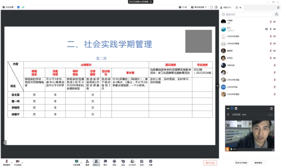 1月18日,腾讯会议上,计算机科学与技术专业的12名学生在李献民老师的主持下,召开了社会实践学期的第二周总结会。会议主要内容为过去一周在社会实践中遇到的问题以及读书感悟的分享。