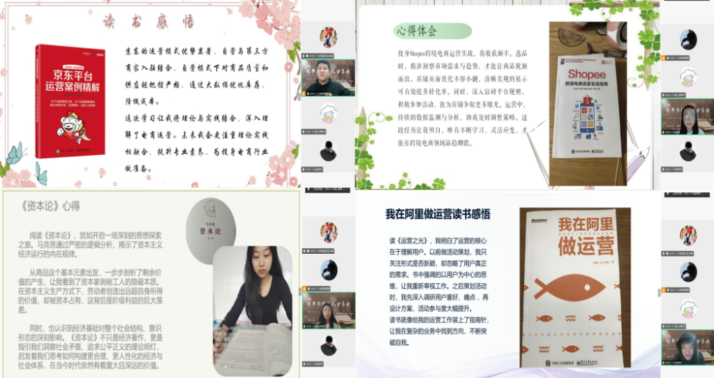 在小组学习交流中,组长李昊桐深入解读《京东平台运营案例精解》,通过剖析案例总结出品牌建设等平台运营关键因素,强调创新思维、细节及用户体验的重要性。组员张倩分享《Shopee跨境电商卖家实战指南》,介绍跨境电商运营特点等内容,并指出关注文化差异与消费习惯的必要性,还分享了实用技巧。组员李帅结合实习经历,分享《我在阿里做运营》的感悟,阐述阿里运营体系要点,强调数据驱动决策。组员徐斯羽分享研读《资本论》体会,从政治经济学角度剖析电商经济规律。