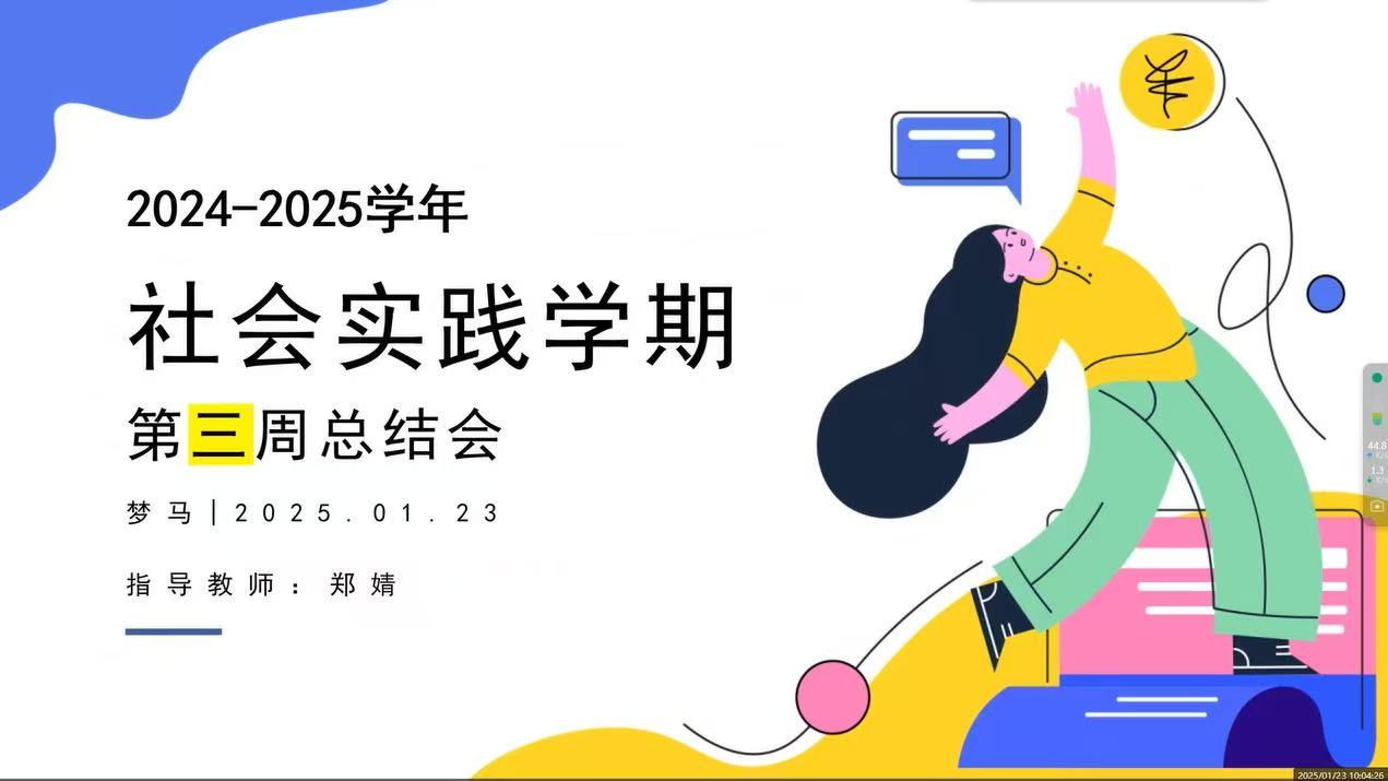 1月23日上午,指导教师郑婧召开社会实践学期第三次总结会,检查学生社会实践完成情况,共21位同学参与。