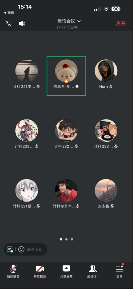 1月23日下午,指导老师胡欣月组织学生于腾讯会议召开了社会学期分享会,本次会议由胡欣月老师主持,共21个人参加。