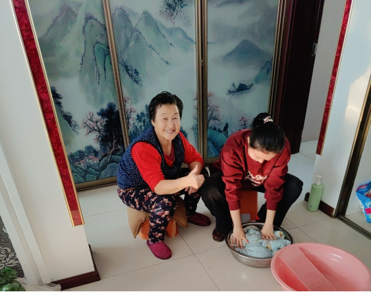 1月21日上午,计科242班姜珊同学,看见邻居老人没有洗衣机,洗衣服只能用手洗,很吃力。儿女都在外地没回来,就主动帮助老人洗衣服、床单和被罩。老人表示孩子上了大学越来越懂事,真是一个尊敬老人爱护老人的好孩子,是大学生中的典范。