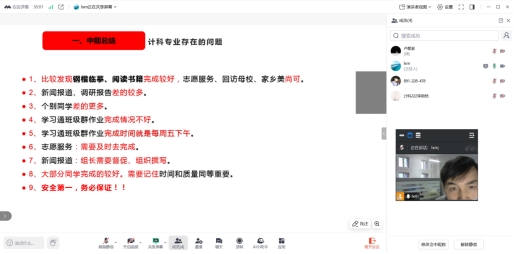 2025年1月25日,李献民老师带领计科专业生涯学生借助腾讯会议平台,成功举行了2024—2025社会实践学期第三周中期总结与阅读分享会,此次会议由李献民主持。