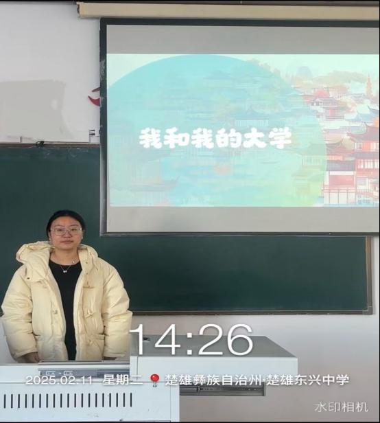 2025年2月11日,信息工程系计科221班李婉容回到了母校楚雄市东兴中学展开了第四学期的母校回访,再一次走进校园,眼前已经是焕然一新,学弟学妹们的精神风貌也令人振奋,此次回访母校也是学长学姐们在大学里获得的经验的宣传。