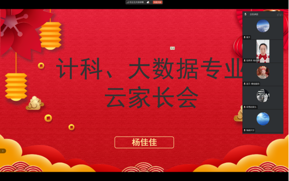 2月14日中午,信息工程系辅导员杨佳佳召开线上家长会,本次家长会旨在为家长全面了解孩子们本学期的学习情况和未来发展搭建一个沟通与交流的平台,线上共有100名家长参加。