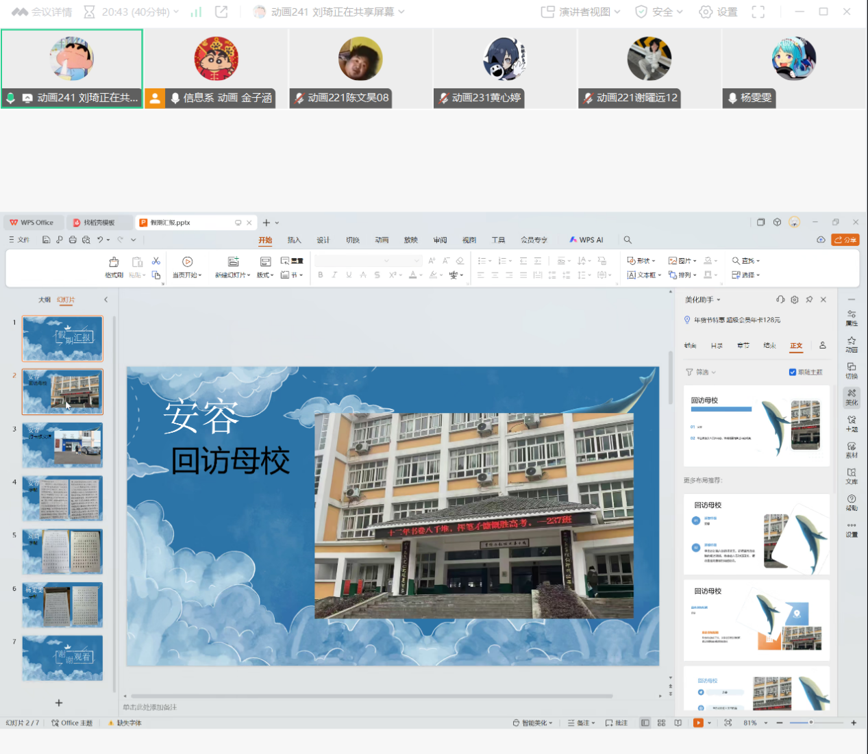 本次会议应到32人实到32人全员出勤。首先抽查了多个小组完成社会实践作业任务的情况,经过本次会议的情报我对此进行总结。多名同学完成了字帖的练习。以及回访母校的社会实践内容每一次的临摹,每一次的挥毫,都是对中华文化博大精深的致敬,母校也是我们心中温暖的港湾,那些在这里度过的美好时光,将永远闪耀在我记忆的长河中。