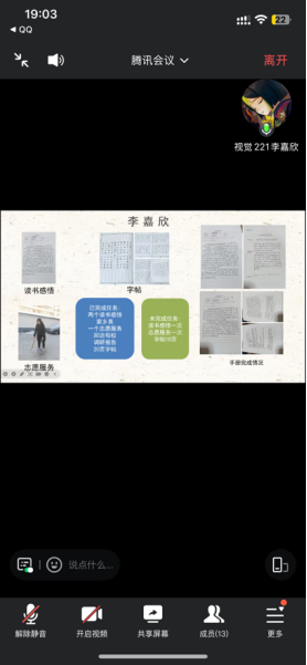 通过此次视频会议,本次的社会实践学期也即将结束了,同学们也更深入的了解了社会实践学期,任务的完成情况也即将收尾,为下几周的学习继续加油。