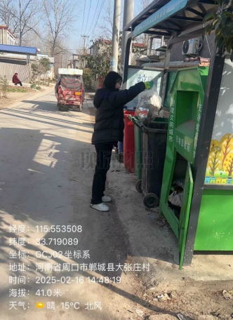 23级大数据232班张舒晴同学于2025年2月16日于河南省周口市郸城县张完乡大张庄行政村展开第二次志愿服务。