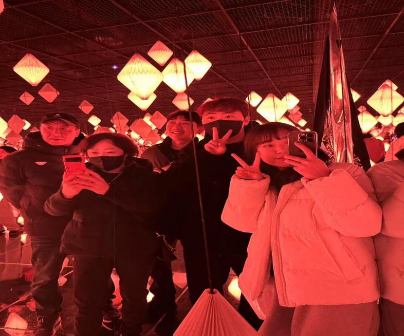 刚进入博物馆,他们先是闻到博物馆的特色之一—人工调制的香薰,从入口进入后开始参观,只见墙壁上时明时暗,内部的壁画就像幻灯片一样进行着变化,为他们演绎着大自然的变化,从视听嗅三方面都能感受到与外界不一样的感触。之后,他们就来到了彩灯区域,这里的彩灯井井有条的排序着,无论从前方还是两侧观看都有一定的顺序性,就仿佛像是走进了迷宫一样。