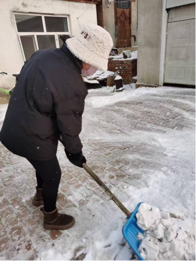 活动当天,志愿者们早早集合,带着铁锹、扫帚等工具来到社区。尽管天气寒冷,积雪和结冰路面给清扫工作带来很大挑战,但大家热情高涨,迅速投入到扫雪行动中。