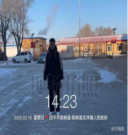 2025年2月16日,SHSJ-296组计科233班万鑫在吉林省梨树县沈阳镇社区进行社区扫雪志愿服务活动。