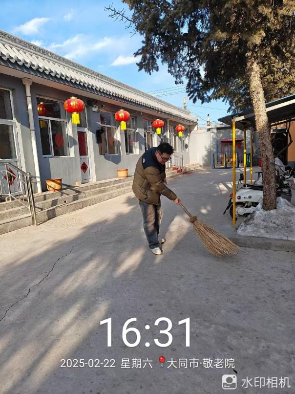 其次,在这次实践活动过程中,余杰同学分到了后勤组,在养老院后勤组帮忙打扫卫生,这段经历满是意义。余杰同学认真清扫每一处角落,擦拭桌椅、整理床铺,不放过任何灰尘。看着老人们的居住环境在自己手中变得整洁温馨,心里满是温暖。希望能用这份微小的力量,为他们的晚年生活增添一份舒适与安心。