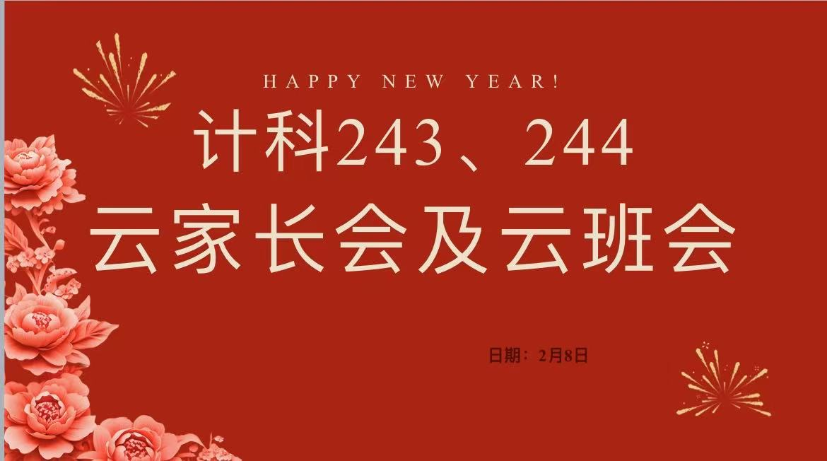 2月8日晚,计科243、244班召开云班会和云家长会,此次会议由辅导员郭磊老师和专业长杨静霞老师主持,计科243班和244班全员参加。