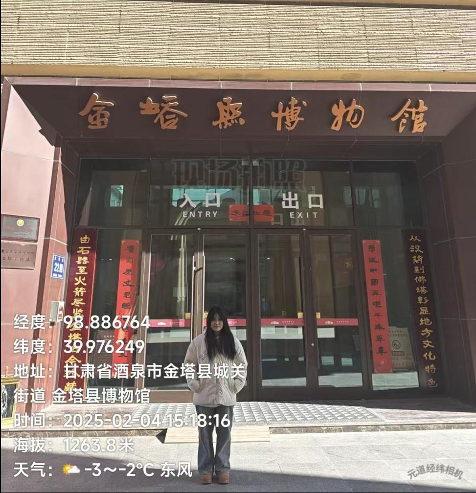 接着,电商242班祁飞燕带来了拜访家乡金塔博物馆的精彩分享。踏入金塔博物馆,仿佛步入了一段浓缩的历史长河。馆内藏品丰富,从古老的石器到精美的陶瓷,每一件都承载着岁月的记忆。祁飞燕同学驻足在一幅古代壁画前,那细腻的笔触和鲜艳的色彩,让人不禁想象起古人的生活场景。从边塞要地到如今的繁荣,先辈们的智慧与汗水令人动容。