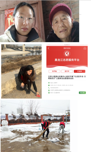 王睿同学参加了五常公路事业发展中心组织的“礼迎亚冬会 文明我先行”公路保洁志愿服务活动。她与其他志愿者一起,耐心细致地清理公路上的垃圾,维护道路设施,确保路面整洁。在活动中,她不仅锻炼了团队协作能力,还向过往行人宣传环保知识和文明出行理念。通过这次活动,王睿为家乡公路环境美化贡献了力量,也为亚冬会的到来营造了整洁美丽的公路环境。