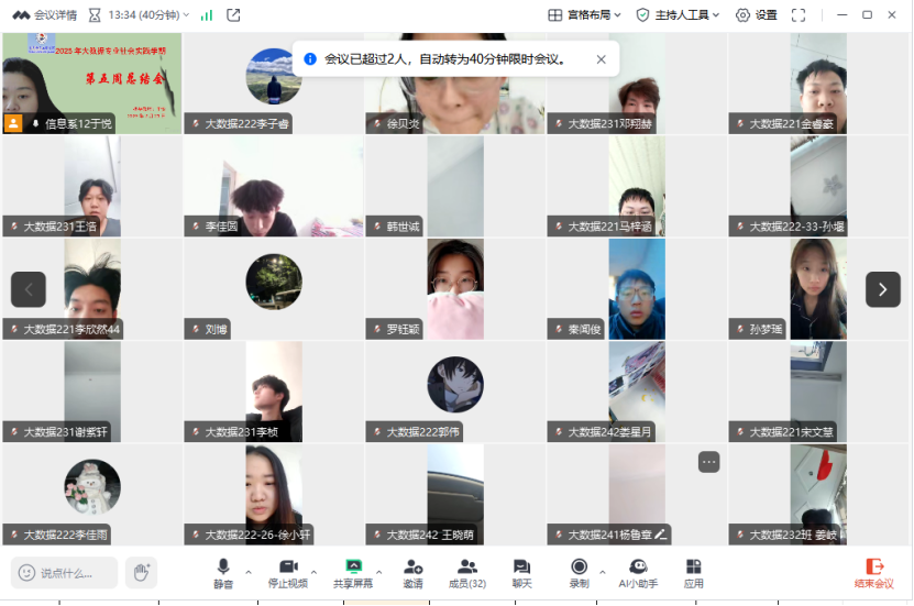 2月21日上午,于老师在线上召开社会实践学期第五次总结会,共31位同学参与。