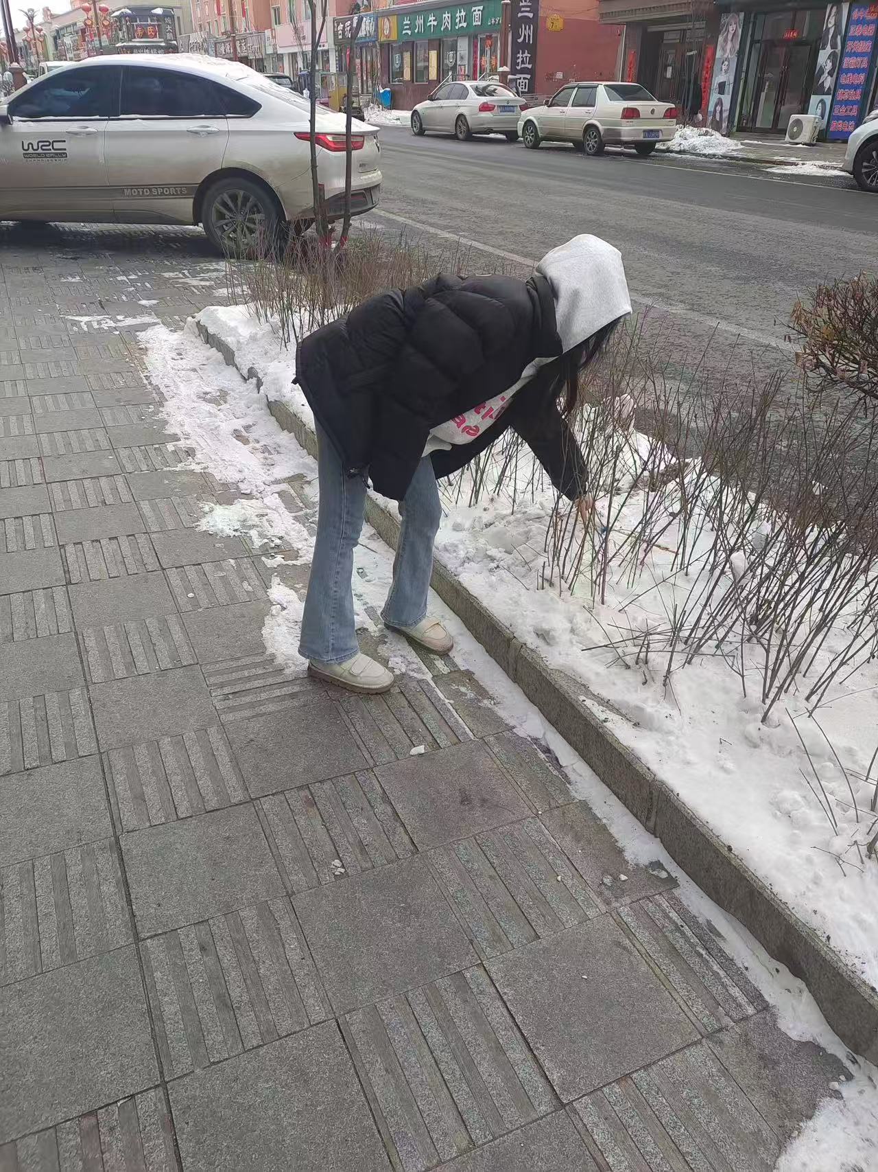 2025年2月16日,一场大雪给城市披上银装,却也给市民出行带来诸多不便。大数据222班刘亚楠路过晟鑫果蔬粮油副食店门时,看到积雪覆盖的路面又湿又滑,进出超市的顾客步履维艰,甚至有人险些滑倒。她立刻回家取来铲子,投身到铲雪除冰的工作中。尽管寒风凛冽,她的双手被冻得通红,可她依旧干劲十足,一下又一下地将积雪铲到路边。路过的市民纷纷投来赞许的目光,还有人主动加入铲雪队伍。经过一个多小时的努力,超市门前的积雪被清理干净,地面变得安全通畅,顾客们能够放心地进出超市。