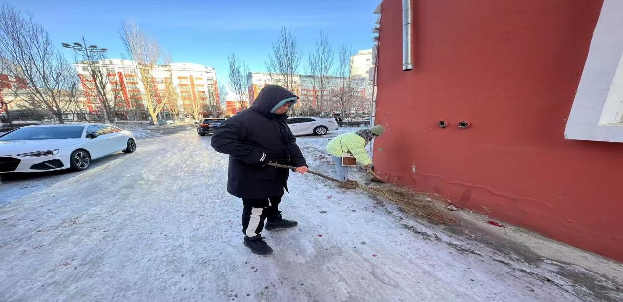 2月21日早,来自齐齐哈尔工程学院的任孝天在冬天来到益民小区,开展了一场别具意义的志愿服务活动。他在寒冷的天气中为居民送去了温暖与关怀,用实际行动践行了新时代青年的责任与担当。他在清晨的寒风中早早地来到小区,准备开始一天的服务工作。给居民们带来了满满的温暖和正能量。改善了小区的卫生。