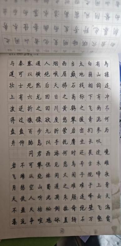 随着练习的深入,逐渐掌握了不同笔画间的搭配规律,字的结构也越发协调美观。在临摹过程中,难免会遇到一些难以写好的字,通过反复观看字帖上的示范,放慢书写速度,不断调整笔画的角度和长度,最终攻克难关。