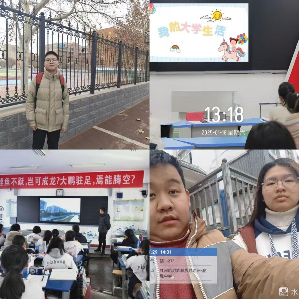 2025年2月10日,计科244班王天宇回到自己的母校,以自己在大学的学习和生活经验为例,为学弟学妹们讲述了大学生活的丰富多彩。以及介绍了自己所在大学的专业设置,校园文化,社团活动,美丽风景等等,让学弟学妹们对大学生活有了更加直观和全面的了解,对未来充满希望。