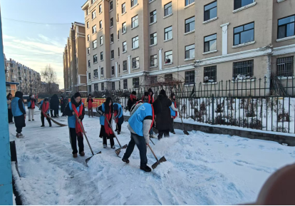 2025年2月24日电商241班席弋婷同学在富锦市的幸福社区帮助社区工作者们清雪.铲除小广告和清扫垃圾。目的是为了保持社区的干净卫生,让老年人们出行不担心脚下,在这过程中她体会到了工作者们的用心和辛苦,环境的美好由大家来守护。