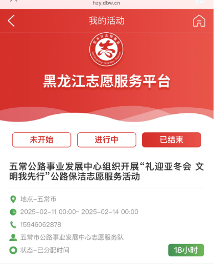 王睿同学参加了五常公路事业发展中心组织的“礼迎亚冬会 文明我先行”公路保洁志愿服务活动。她与其他志愿者一起,耐心细致地清理公路上的垃圾,维护道路设施,确保路面整洁。在活动中,她不仅锻炼了团队协作能力,还向过往行人宣传环保知识和文明出行理念。通过这次活动,王睿为家乡公路环境美化贡献了力量,也为亚冬会的到来营造了整洁美丽的公路环境。