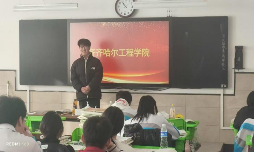 2025年1月10日电商231班王愉凯同学回访了高中母校五常市第二中学校,回到熟悉的高中校园,他首先拜访了曾经的任课老师及班主任,并向学弟学妹们详细介绍了就读的齐齐哈尔工程学院,王愉凯同学走进学弟学妹们的教室,他通过精心制作的PPT,从校园环境、专业设置、实践教学等多个方面,讲解了齐齐哈尔工程学院的特殊之处。在介绍学校专业时,他详细讲述了所学专业的课程设置、就业前景以及在学习过程中的收获与感悟,并且讲解了本专业的就业方向以及就业前景。这次母校回访拉近了他与高中的纽带,并且让学弟学妹们了解了齐齐哈尔工程学院。