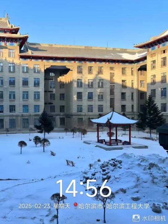 2025年02月 23 日,集成电路设计与集成系统的孙宇轩同学来到了所在地的哈尔滨工程大学,踏入哈尔滨工程大学,浓郁的军工特色与深厚的学术氛围扑面而来。校园内,俄式风格建筑古朴庄重,与现代化教学楼相映成趣,彰显着学校的历史底蕴与时代活力。