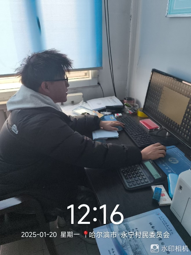 2025年1月20日,集成电路设计与集成系统专业的孙宇轩同学来到哈尔滨市-永宁村民委员会帮助了村书记整理了文件,解决了一些电子文件问题等。