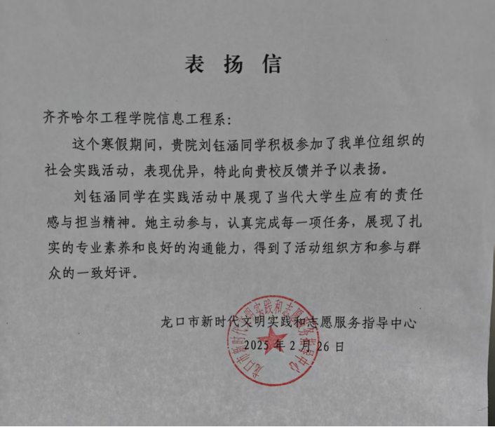 首先进行讲述的是电商231班刘钰涵,她分享了自己参与志愿服务的经历,她总共参与了两次志愿服务活动,并且由于表现优异获得了由龙口市新时代文明实践和志愿服务指导中心颁发的表扬信。她在会议中分享了两次活动的过程,一是,她作为志愿者给怡园社区的居民们准备了新春慰问礼品,并参与举办了文艺汇演活动;二是,她作为志愿者,在活动开始前,作为引导员,引导现场市民入场,维持好现场秩序,各个活动环节的开展工作,并且还在服务区域,为市民提供各类帮助。