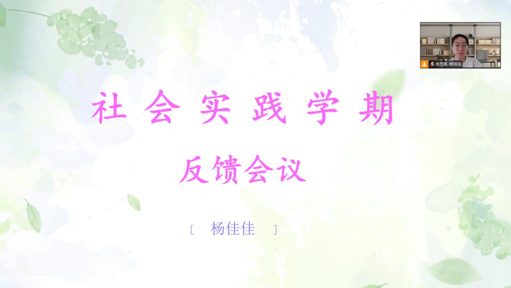 此次线上“社会实践学期中期反馈会”的召开,不仅让辅导员对同学们的社会实践进展有了清晰的了解,也为同学们提供了交流和学习的平台。通过会议的交流和分享,同学们进一步明确了实践的方向和目标,增强了团队协作意识和安全意识。