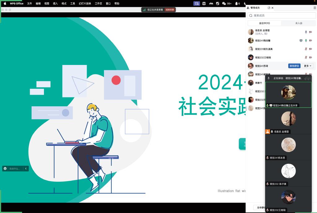 2月15日晚上6点,召开社会实践活动线上周总结会议,由生涯导师赵倩雪主持,共13名生涯学生参与。本周主要讲述了对社会实践学期完成情况以及校园文创汇报,整个会议旨在对整个社会实践学期的工作进行总结,确保各项活动的顺利有效进行。