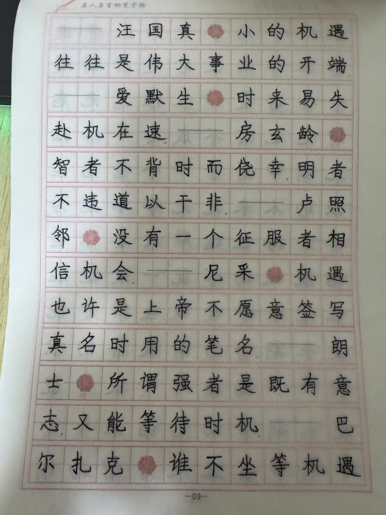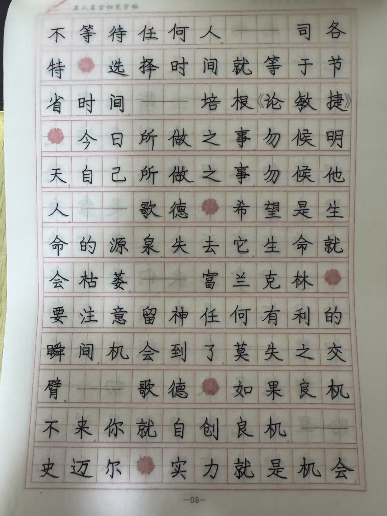 SHSJ-211小组刘志宇、毛宇辉、王智慧、王剑翔4名同学坚持每日字帖临摹,在笔墨间磨炼意志、提升书写水平。