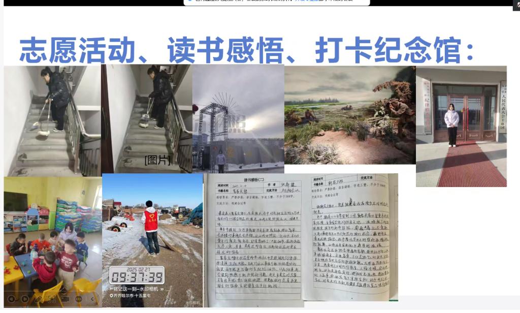 会议伊始,各小组依次汇报了第四学期第六周的活动开展情况。其中,SHSJ-209小组详细介绍了打卡家乡美活动的进程以及专业选修部分的完成情况;SHSJ-210小组的同学们分享了第一次志愿服务的具体进展;SHSJ-211小组的同学们坚持每日临摹字帖,不断提升书写素养;SHSJ-212小组的同学们汇报了回访母校的难忘经历以及“家乡美”任务的推进情况;SHSJ-213小组的同学们则汇报了第二次志愿服务的收获、第三次读书分享会的精彩瞬间,以及调研报告的撰写进度;SHSJ-214小组的同学们阐述了打卡家乡美活动的成果以及调研报告的完成情况。