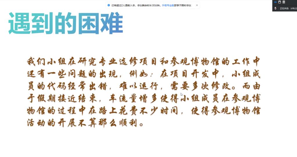 随后,作为郭伟伟生涯导师纵向班级的班长,孙晗哲同学进一步梳理了近期各项活动的完成情况,再次强调了返校后需要上交的社会实践学期的各项材料细节要求,并对整个社会实践学期各组表现进行了全面总结。