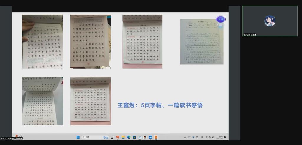 在本次会议中,李阁老师首先对学期任务中一些细节要求再次进行了说明,确保与会的每位学生对社会实践的总体目标、具体步骤等。随后,在汇报环节中,各小组汇报了五篇钢楷临摹、母校回访等任务,大家都向学弟学妹们传授大学生活的丰富体验和学习心得。部分小组不仅顺利完成了专业书籍的部分阅读,还在线上进行交流了心得。最后,李阁老师鼓励学生保持积极向上的态度,勇敢面对实践过程中的每一个挑战。