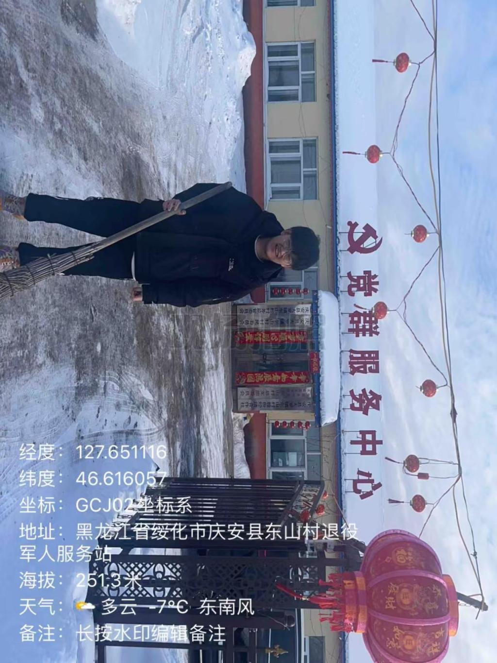 首先,毕舒航仔细查看了服务站周边的环境状况,将积雪较多的区域牢牢记住。清理积雪的工作从服务站的角落开始,认真清扫堆积的积雪,不放过任何一处死角。其次,面对一些难以清理的坚冰时,用铲子一点点地铲掉。经过几个小时的努力,服务站及其周边的道路都变得平稳、坚冰不再。