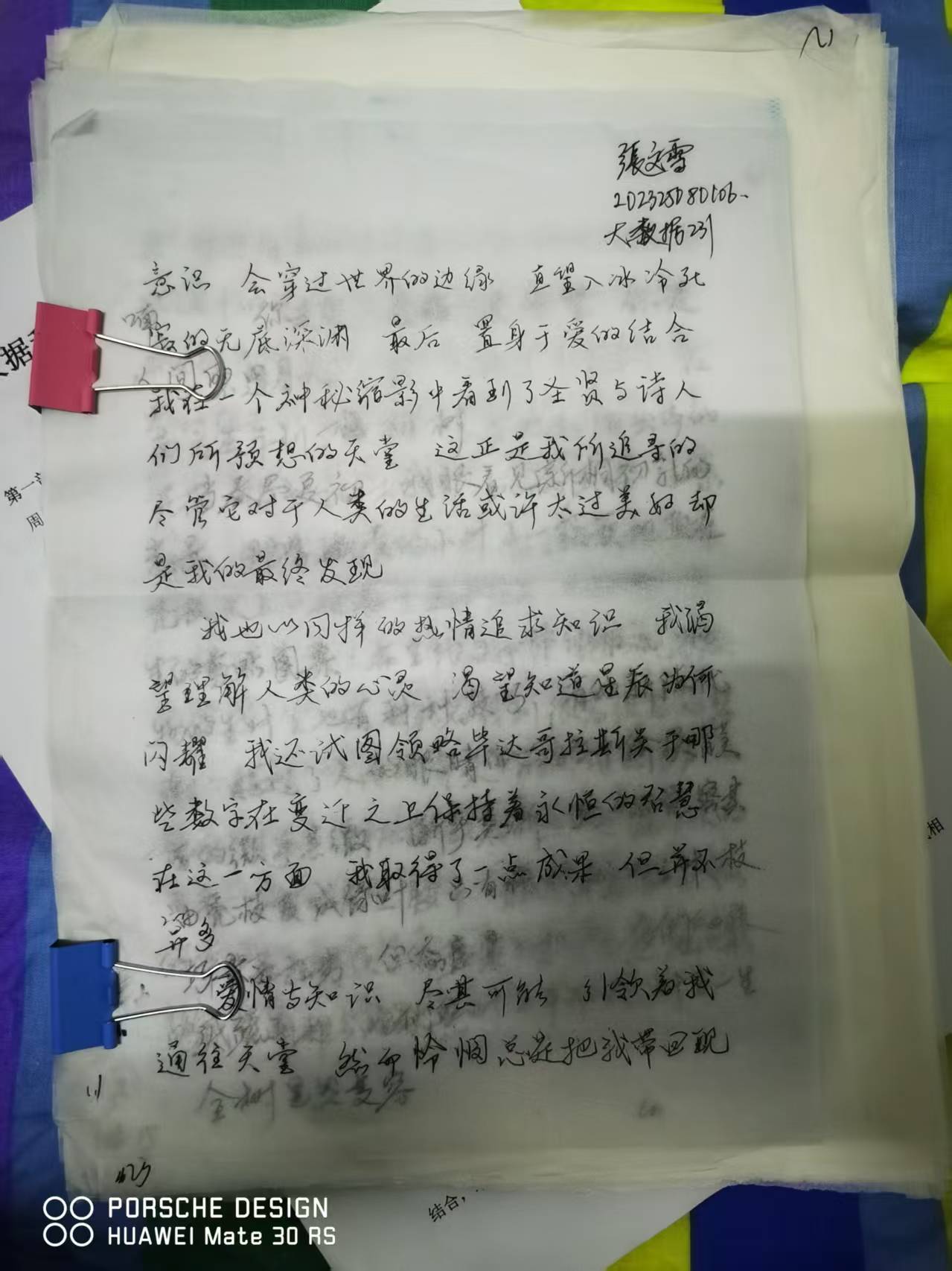 转向行楷书写时,张文雪感受到了另一种书写的魅力。行楷的流畅与灵动,让张文雪在书写中找到了放松与自由。在行楷的练习中,张文雪学会了如何将钢楷的功底融入行书,使字体既有骨架又不失飘逸。行楷书写的心得,在于把握笔画的连贯与整体的和谐,让字迹在纸上跳跃出生命的韵律。