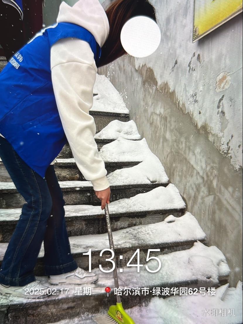 2月17日上午,经过多场皑皑的白雪将整个社区妆点成了白色的海洋,虽然雪景美化了城市,但也给居民出行带来诸多不便。大数据222班孙堰同学以及社区组织20多名志愿者加入社区的清雪作战,与社区工作者们一起清扫积雪。