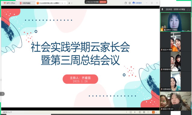 1月26日晚6点,齐媛园老师在腾讯会议组织召开2024—2025社会实践学期第三周会议,会议由齐媛园老师主持。