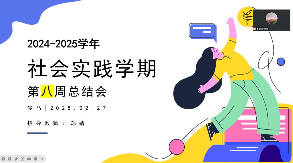 2月27日,郑婧老师线上召开了社会实践学期第八周总结会,共20名学生参加。