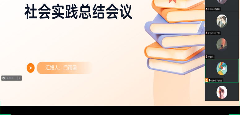 在总结会议上,闫雨函老师首先回顾了整个社会实践学期的计划与目标,强调了社会实践对于信息工程系学生理论与实践结合的重要意义。