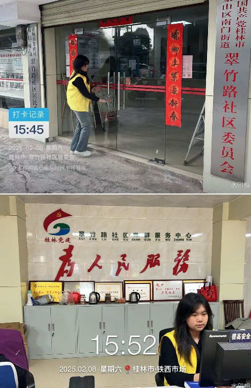在活动中,郭洳彤选择到四季花都热卤当家担任前台收银员,第二天又在林阳公司实践,跟随室内设计师从CAD软件入手,将学校学到的知识运用到实践中去。韦培师跟随社区主任进行了拜访老人,清理社区街道垃圾的任务,改善了环境卫生状况。陈杉月在村委的带领下进行村中心街道打扫工作,不仅改善了卫生还传递积极向上的社会正能量。闫兆婧在社区工作者的带领下清理积雪,为居民减轻出行隐患。戴梦雪和社区的努力下保障了居民的安全出行。