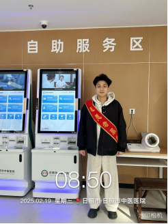 刘俊熙同学来到日照市中医院后,迅速融入医院的繁忙节奏。每天清晨,他总是早早到达岗位,以饱满的热情开启一天的服务。在门诊大厅,他耐心协助医护人员引导患者就医,针对患者提出的各类问题,都能给出清晰准确的解答。遇到一些对自助挂号缴费设备感到陌生的患者,刘俊熙会一步一步地指导他们操作,从选择科室、挂号,到缴费取单,每一个步骤都讲解得十分细致 。有一次,一位老人因听力不太好,对就医流程感到十分迷茫,刘俊熙便全程陪伴在老人身边,轻声细语地交流,帮助老人完成了挂号、就诊以及各项检查,直到老人顺利取到药品,他才放心离开。