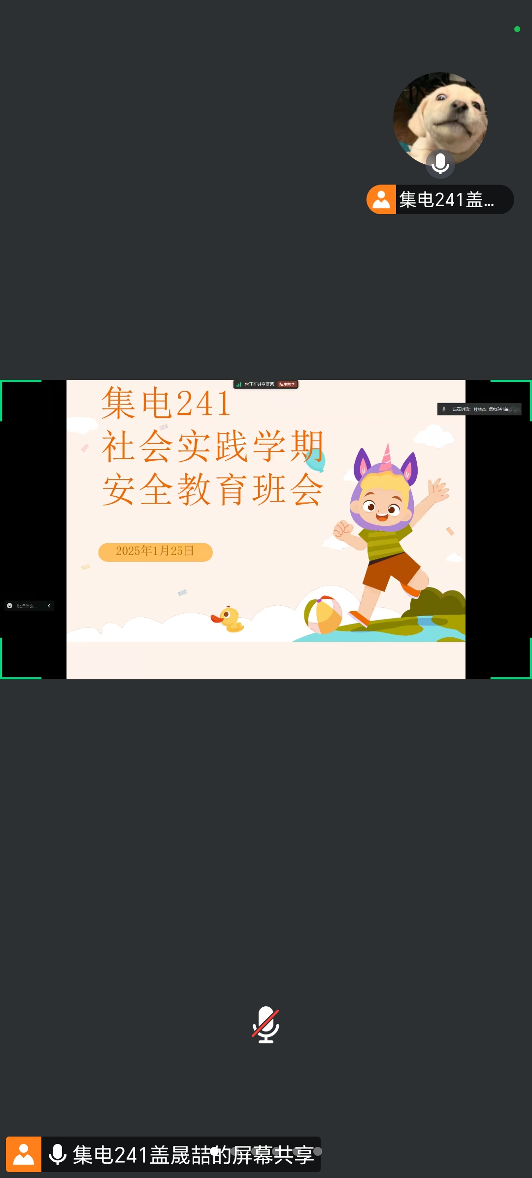 1月25日下午,为切实提升同学们在社会实践期间的安全防范意识,确保每位同学能够安全、顺利地完成实践任务,集电241班特以线上会议方式召开了社会实践学期安全教育班会。此次班会由集电241班辅导员黄金石主持召开,全班同学积极参加。