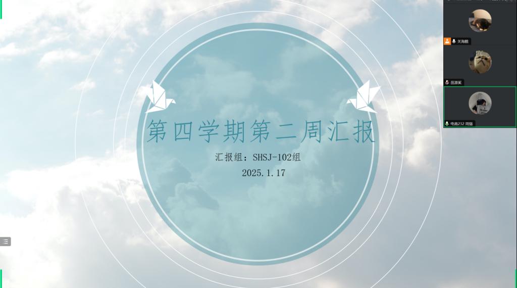 社会实践学期正式开始二周,同学们都积极完成了任务的陆续完成了下达的任务,特此小组组员关海舰于1月17日中午午12时00分在腾讯会议开展SHSJ-102小组社会实践学期第二周汇报。本次汇报由关海舰主持,共3名同学参加汇报。组员关海舰主持会议进程。