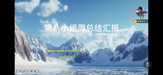 6月29日,大数据221班在腾讯会议中召开专业实践学期中召开周总结会议,由指导教师高敏老师主持,大数据221班全体同学参加。