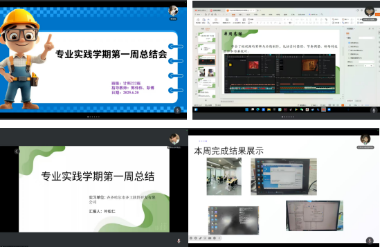 在第一周总结会上,叶松仁、池昊、彭冠华、毕舒航4名同学积极分享了自己的实习成果,介绍了自己的学习内容以及在实习过程中遇到的问题及解决办法,无论是软件开发、网络维护安全还是嵌入式开发,同学们都认真努力,充分利用这个实践机会来扩充知识、提升自我。在自由讨论环节,师生们就实践过程中出现的问题展开热烈探讨。