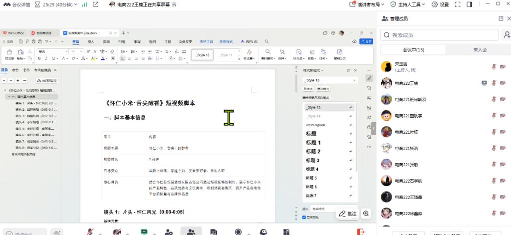 图3 电商222班王楠同学汇报短视频脚本截图